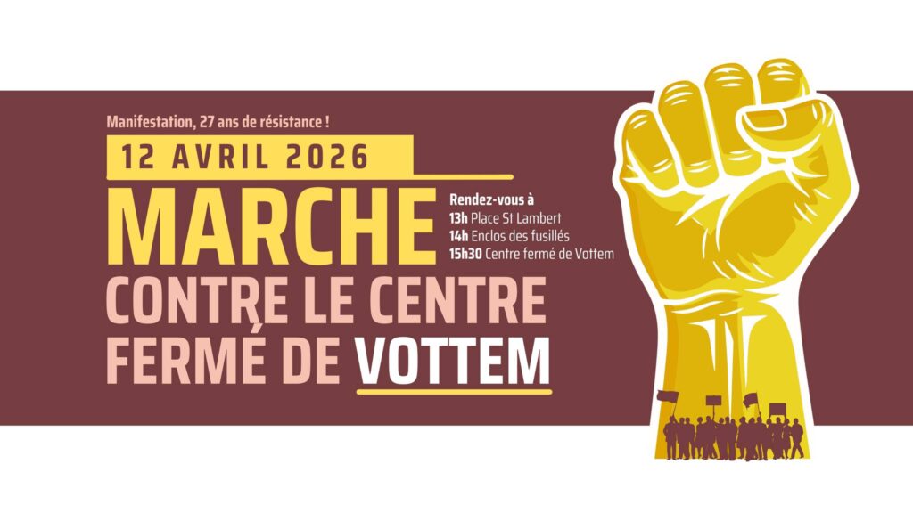 Le dimanche 12 avril 2026, une marche citoyenne s’élancera de la Place Saint-Lambert à Liège à 13h pour rejoindre le centre fermé de Vottem. Organisée par le Cracpe – Collectif de Résistance Aux Centres Pour Etrangers, le MOC Liège – Verviers, Le Monde des Possibles, ASBL La Cible, la FGTB Liège-Huy-Waremme, Les Territoires de la Mémoire, Le Centre d’Action Laïque de la Province de Liège, Peuple et Culture Wallonie-Bruxelles, Attac Liège, la Coordination des sans-papiers de Belgique et le CPCR Centre PolyCulturel Résistances. Cette manifestation est un appel clair à refuser la politique migratoire du gouvernement Arizona, la plus restrictive et la plus liberticide qu’ait connue notre pays.