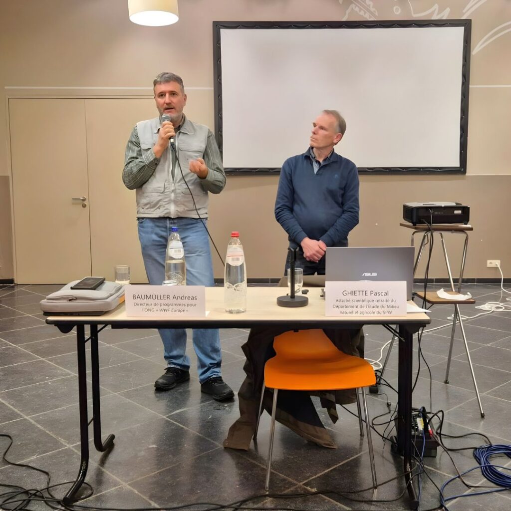 - Pascale Ghiette, attaché scientifique retraité du Département de l’Étude du Milieu Naturel et Agricole du Service Public de Wallonie, a quant à lui apporté un éclairage précis sur la réalité du terrain en Wallonie : le suivi des populations, les comportements des meutes et les mesures concrètes pour favoriser une cohabitation durable entre l’humain et le loup.