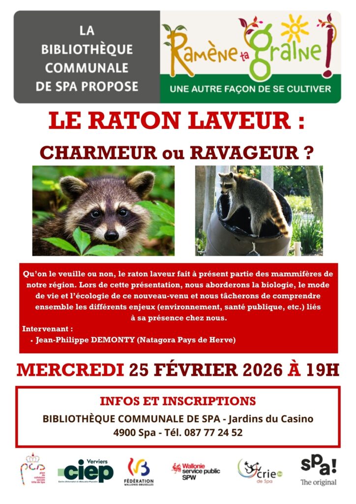 Spa | 25/02 | Grainothèque: Le raton laveur, un nouveau voisin envahissant