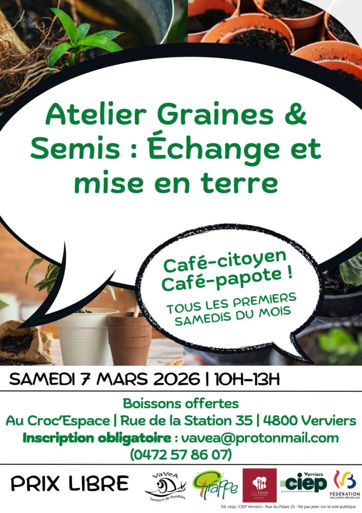 Verviers | 07/03 | Café-citoyen : Atelier Graines & semis, échanges et mise en terre